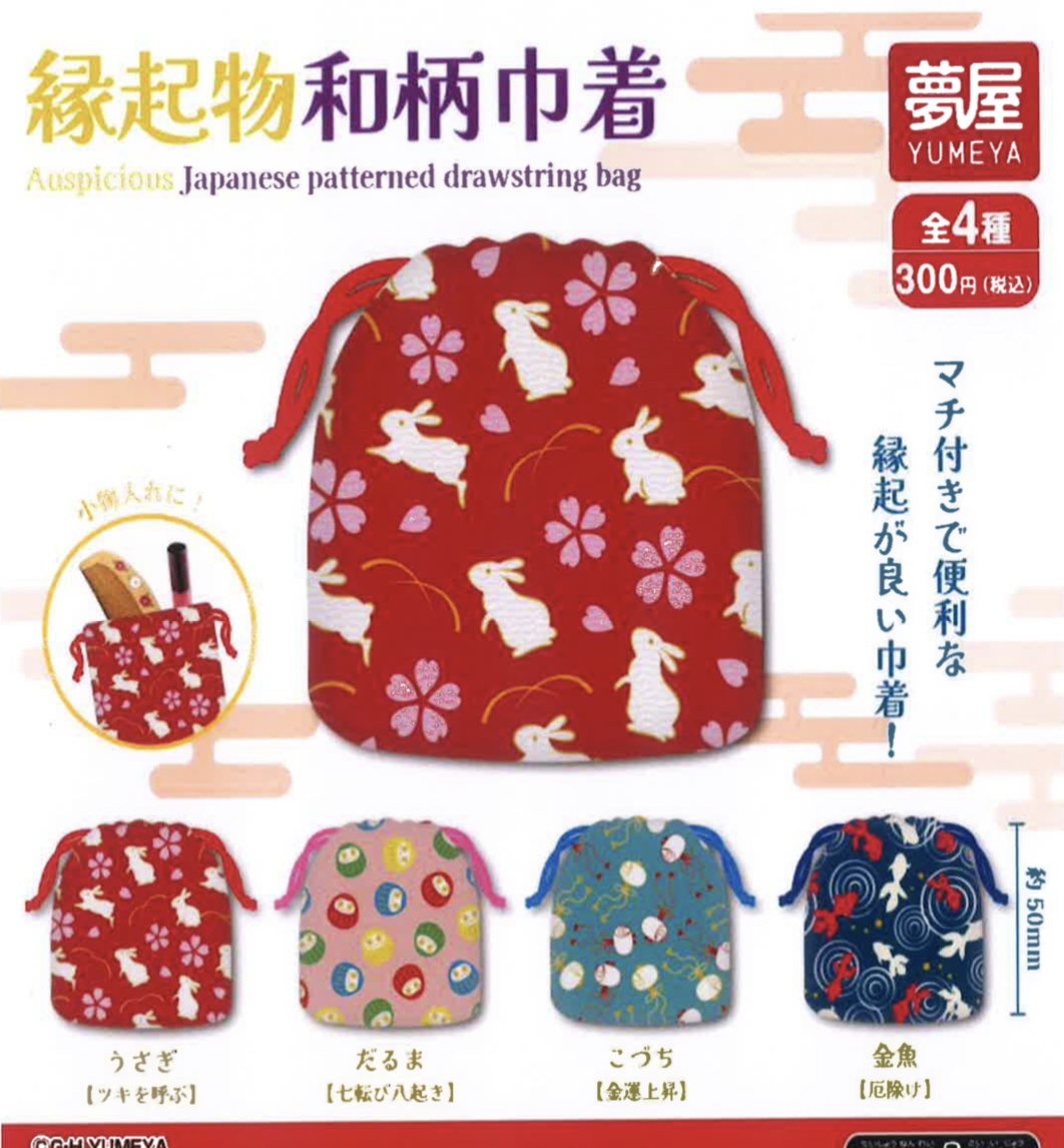 縁起物和柄巾着コレクション(1月)【▼300円カプセルトイ 40個入り 夢屋】+正規台紙