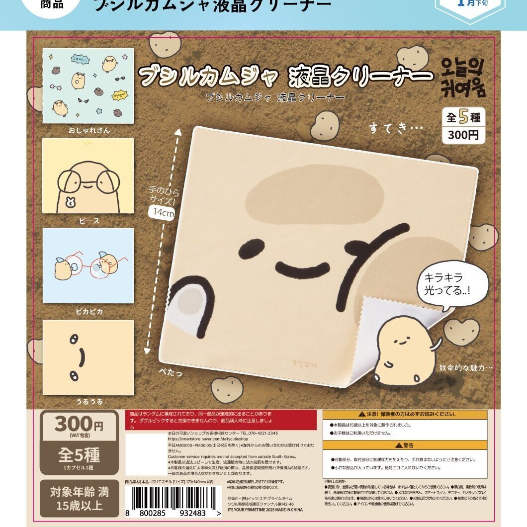 御予約受付中 | 発売予定 | 1月発売 | メーカー | It's Your Primetime Inc.(韓国メーカー) | 商品名 | 【ブシルカムジャ 液晶クリーナー】ブシルカムジャ液晶クリーナー (全5種) | 仕様 | 300円カプセルトイ | 入り数 | 40個入り | カプセルサイズ | | JANコード | | 内容 | 受注締切日:2025年10月10日(金)午前7時【AM】になります。お早目のご予約お願いいたします! 300円カプセル。 こちらの商品は、商品入荷時の1袋40個+正規台紙1枚、25%OFF¥12000→¥8999での販売となります。