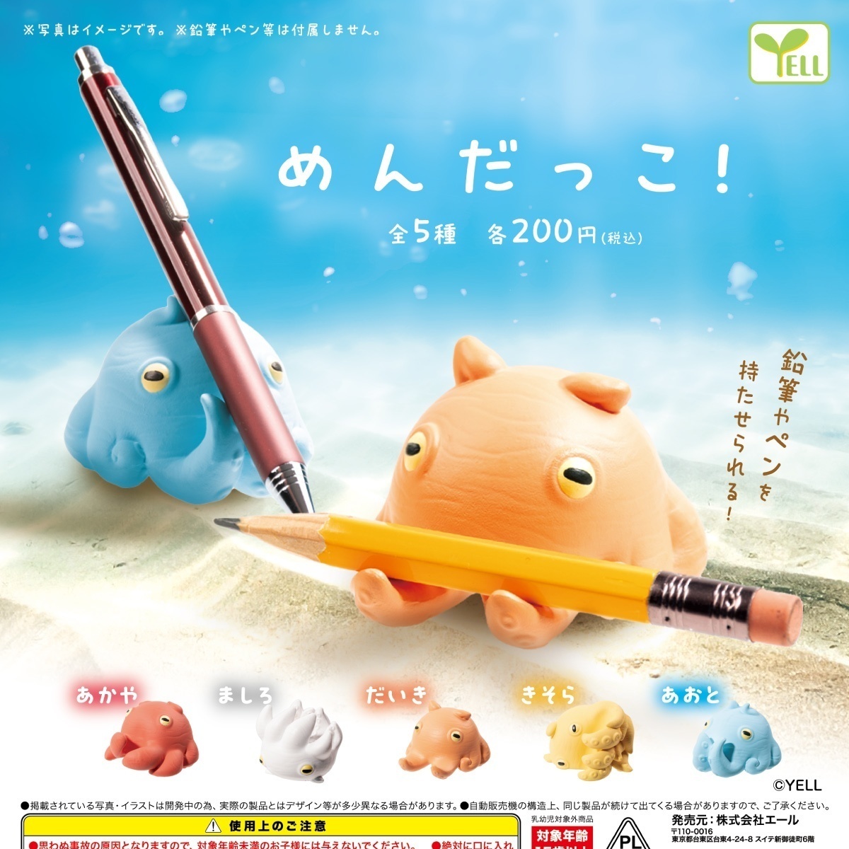 | 御予約受付中 | | 発売予定 | 2月発売 | | メーカー | エール | | 商品名 | めんだっこ! (全5種) | | 仕様 | 200円カプセルトイ | | 入り数 | 50個入り | | カプセルサイズ | 65mm | | JANコード | | | 内容 | 受注締切日:2025年11月11日(火)午前7時【AM】になります。お早目のご予約お願いいたします! 200円カプセル。 鉛筆やペンを持たせられる! こちらの商品は、商品入荷時の1袋50個+正規台紙1枚、30%OFF¥10000→¥6999での販売となります。