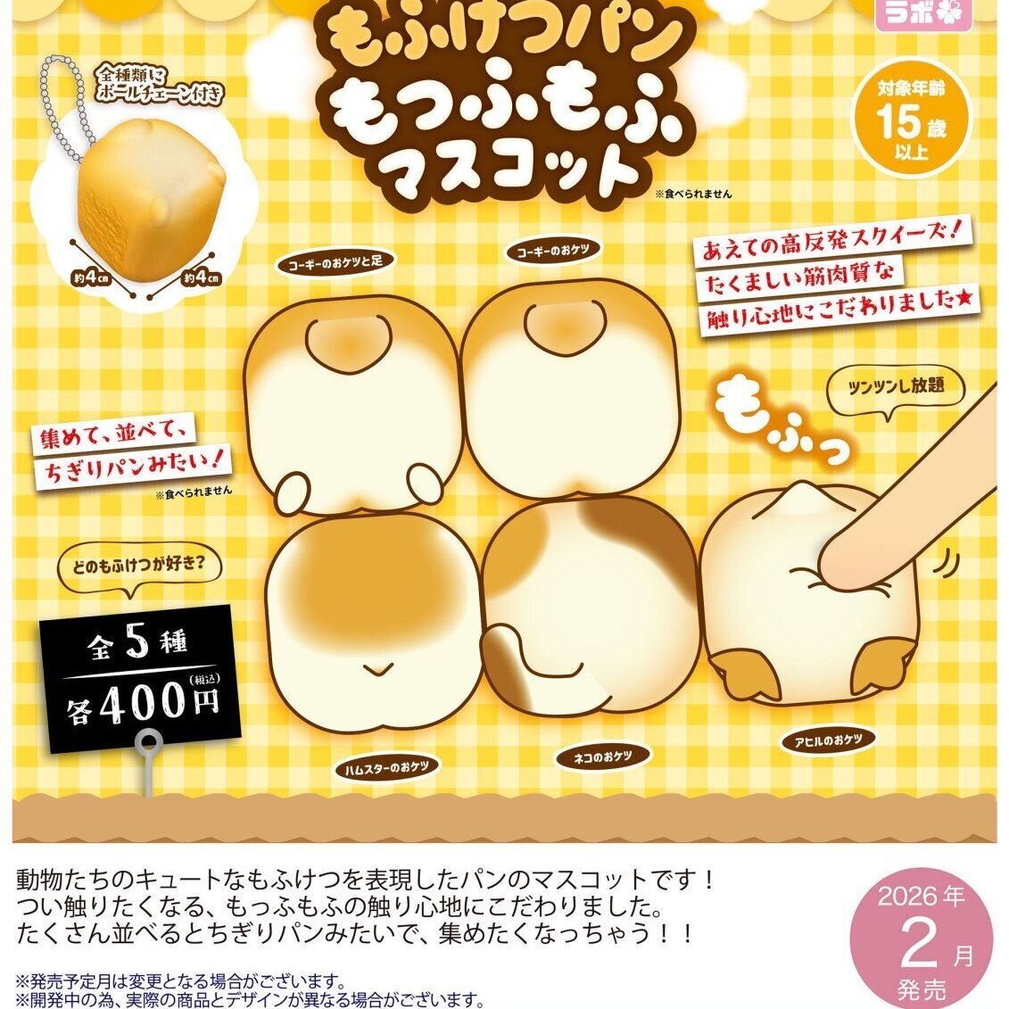 もふけつパン もっふもふマスコット(再販)(2月)【○400円カプセル 30個入り さくら】+正規台紙