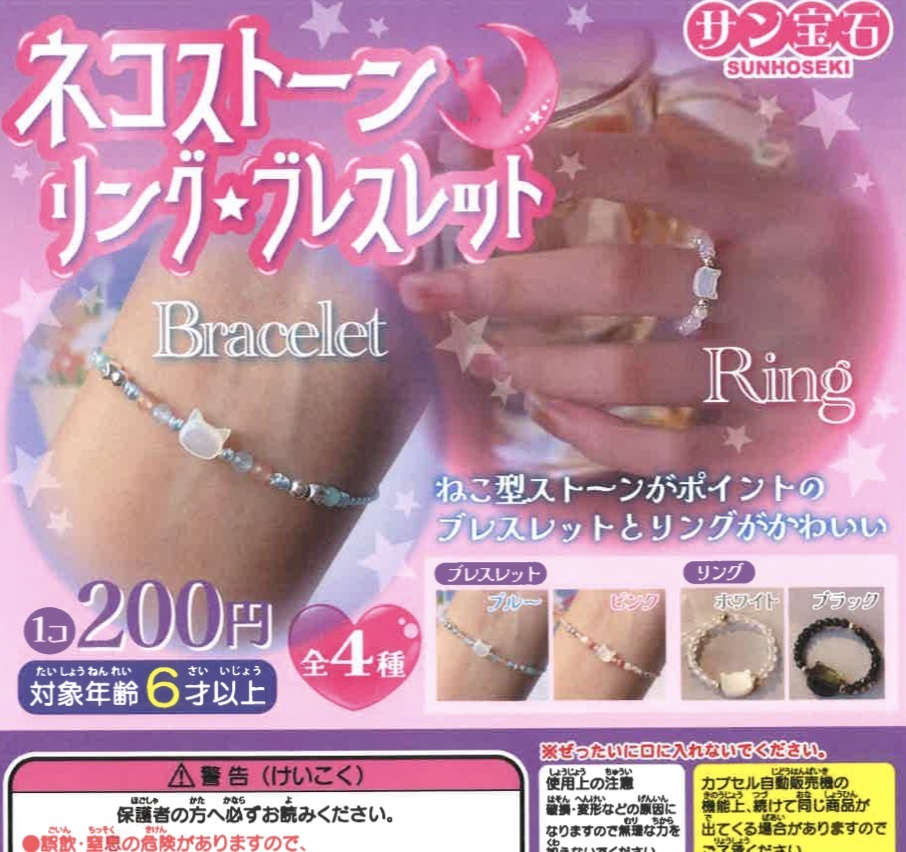ネコストーンリング・ブレスレット(3月)【●200円カプセル 50個入り サン宝石】+正規台紙