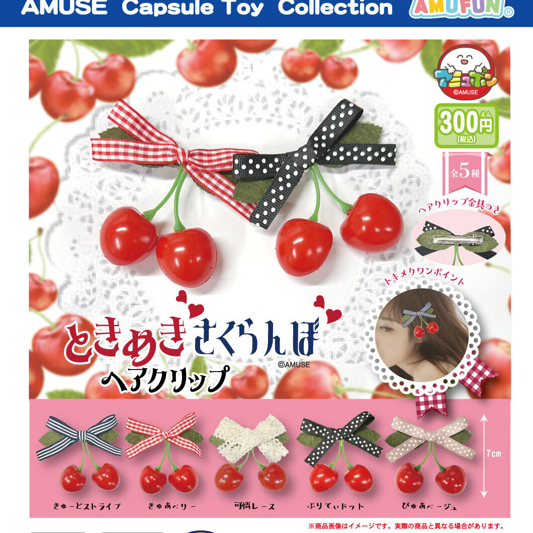 ときめきさくらんぼヘアクリップ(再販)(4月)【●300円カプセル 40個入り アミューズ】+正規台紙
