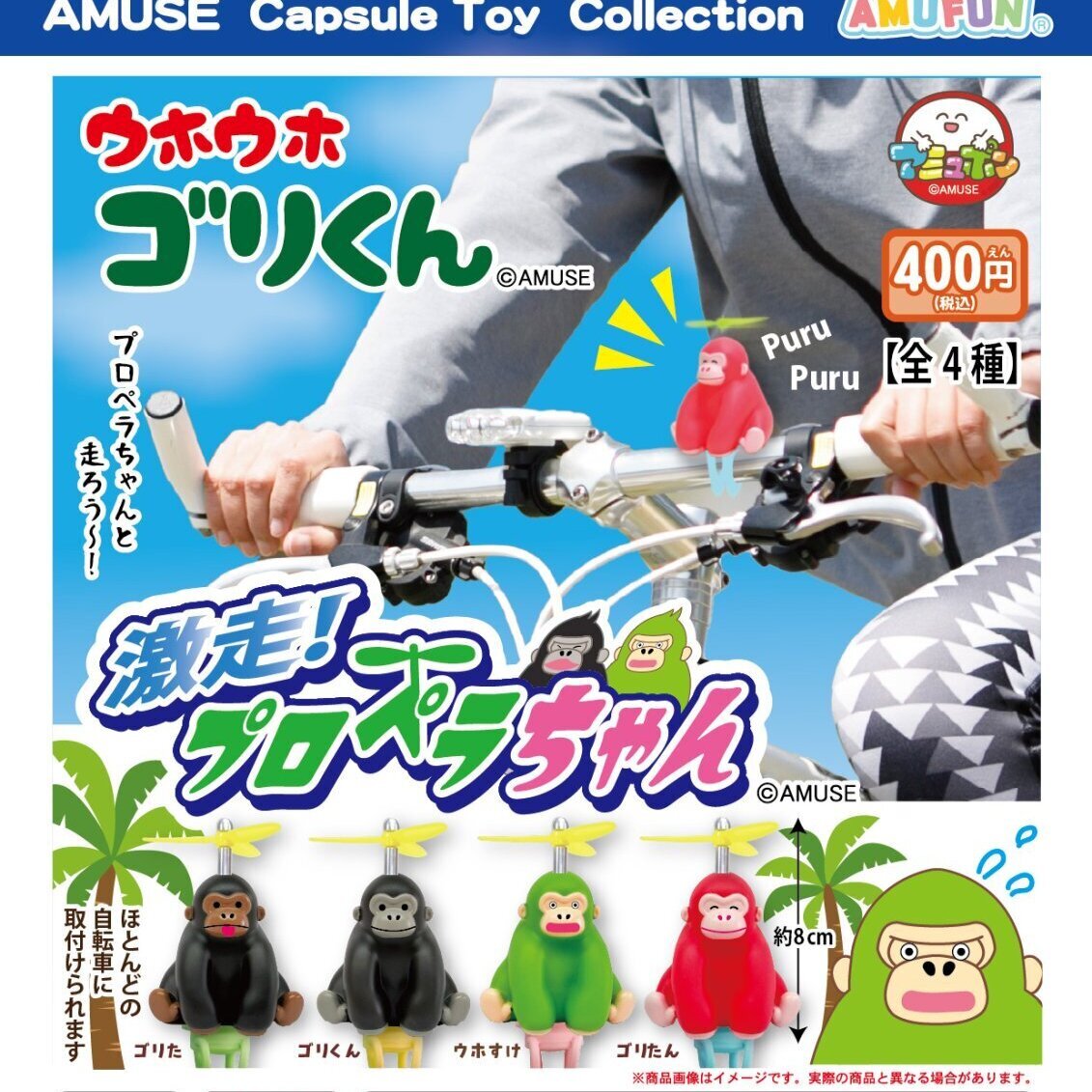 | 御予約受付中 | | 発売予定 | 4月発売 | | メーカー | アミューズ | | 商品名 | ウホウホゴリくん激走プロペラちゃん (全4種) | | 仕様 | 400円カプセルトイ | | 入り数 | 30個入り | | カプセルサイズ | | | JANコード | | | 内容 | 受注締切日:2025年12月11日(木)午前7時になります。お早目のご予約お願いいたします! 400円カプセル。 こちらの商品は、商品入荷時の1袋30個+正規台紙1枚、29%OFF¥12000→¥8579での販売となります。