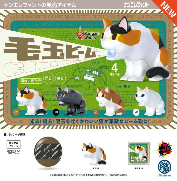 | 御予約受付中 | | 発売予定 | 3月発売 | | メーカー | ケンエレファント | | 商品名 | 毛玉ビーム | | 仕様 | 500円カプセルトイ | | 入り数 | 20個入り | | カプセルサイズ | 73mm | | JANコード | | | 内容 | 受注締切日:2025年12月11日(木)午前7時【AM】になります。お早目のご予約お願いいたします! 500円カプセル。 光る!鳴る!毛玉を吐くかわいい猫が素敵なビーム砲に!! 全4種類 ・ミケ ・クロ ・ハチワレ ・シロ こちらの商品は、商品入荷時の1袋20個+正規台紙1枚、17%OFF¥10000→¥8299での販売となります。