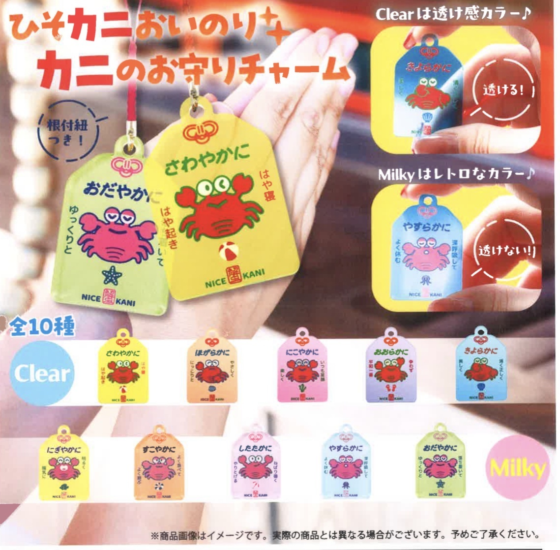 | 御予約受付中 | | 発売予定 | 3月発売 | | メーカー | funbox | | 商品名 | ひそカニおいのりカニのお守りチャーム (全10種) | | 仕様 | 300円カプセルトイ | | 入り数 | 40個入り | | カプセルサイズ | 48mm | | JANコード |