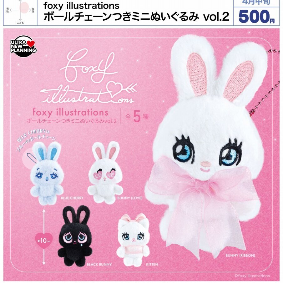 foxy illustrations ボールチェーンつきミニぬいぐるみvol.2(4月)【●500円カプセル 20個入り ウルプラ】+正規台紙