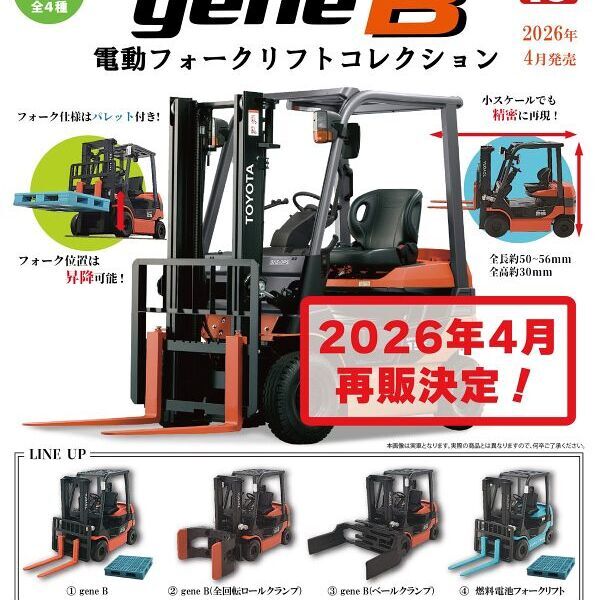 | 御予約受付中 | | 発売予定 | 4月発売 | | メーカー | トイズキャビン | | 商品名 | 1/64 gene B 電動フォークリフトコレクション(再販) | | 仕様 | 400円カプセル | | 入り数 | 30個入り | | カプセルサイズ | 65mm | | JANコード | | | 内容 | 受注締切日:2025年12月11日(木)午前7時【AM】になります。お早目のご予約お願いいたします! 400円カプセル。 圧倒的人気に応え再販決定です! 3年ぶりの再販!小スケールでも精密に再現!