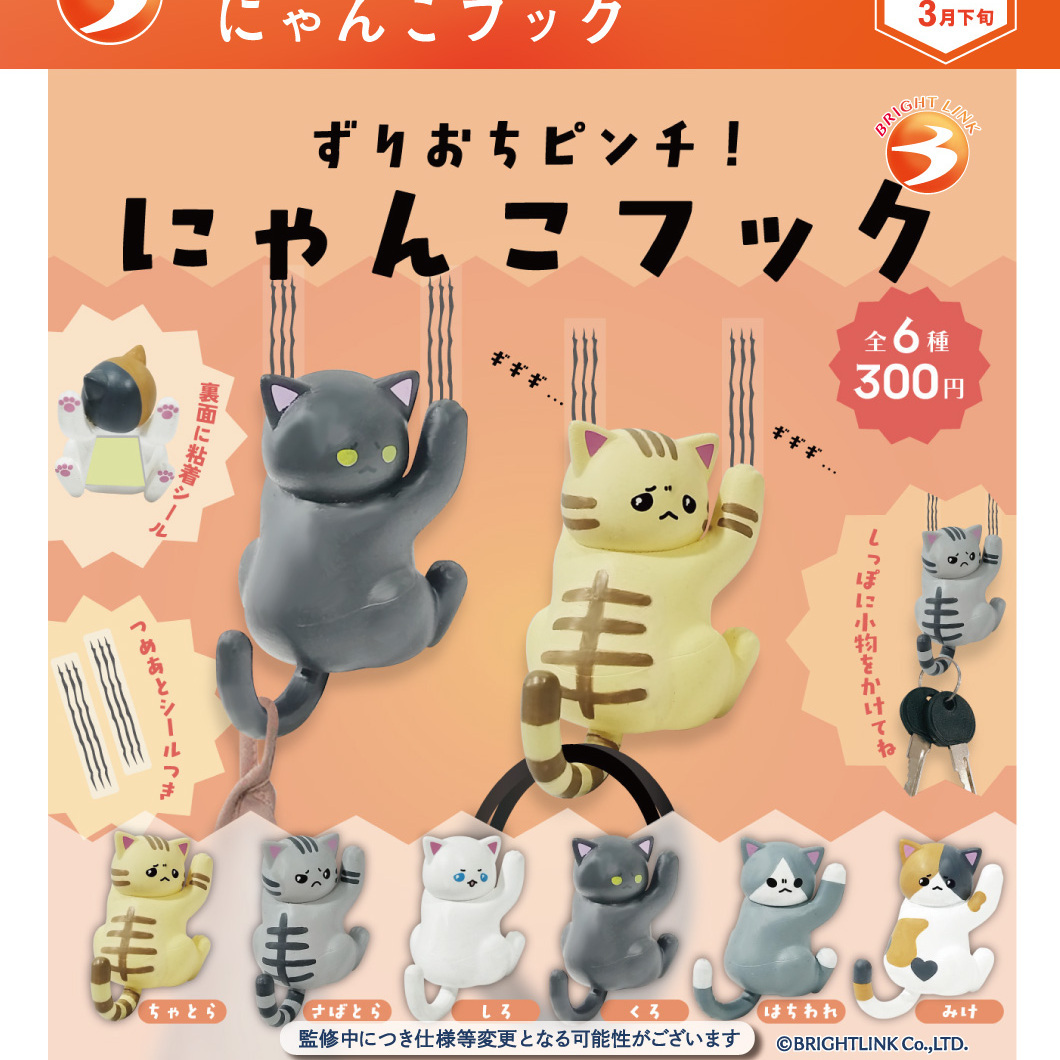 ずりおちピンチ!にゃんこフック(3月)【●300円カプセル 40個入り ブライトリンク】+正規台紙