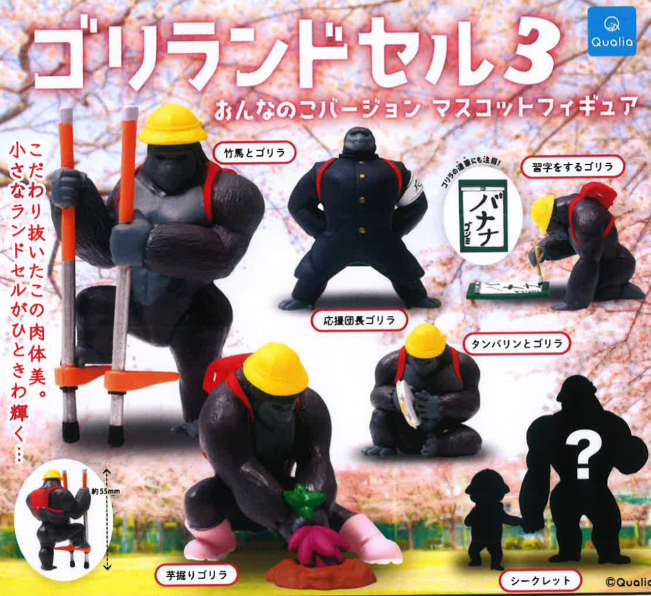 ゴリランドセル おんなのこバージョン マスコットフィギュア3(4月)【●400円カプセル 30個入り クオリア】+正規台紙