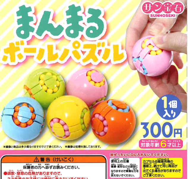 | 御予約受付中 | | 発売予定 | 5月発売 | | メーカー | サン宝石 | | 商品名 | まんまるボールパズル | | 仕様 | 300円カプセル | | 入り数 | 40個入り | | カプセルサイズ | 48mm | | JANコード |