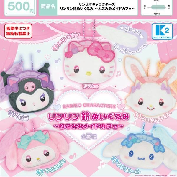 ホームケーツーステーション 【カプセルトイ】サンリオキャラクターズ リンリン鈴ぬいぐるみ -ねこみみメイドカフェ-(6月)【◇500円カプセル 30個入り ケーツー】+正規台紙1枚
