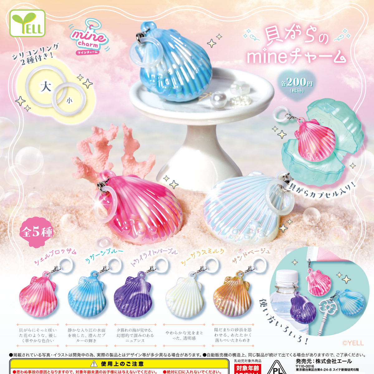 貝がらのmineチャーム(7月)【◆200円カプセル 50個入り エール】+正規台紙