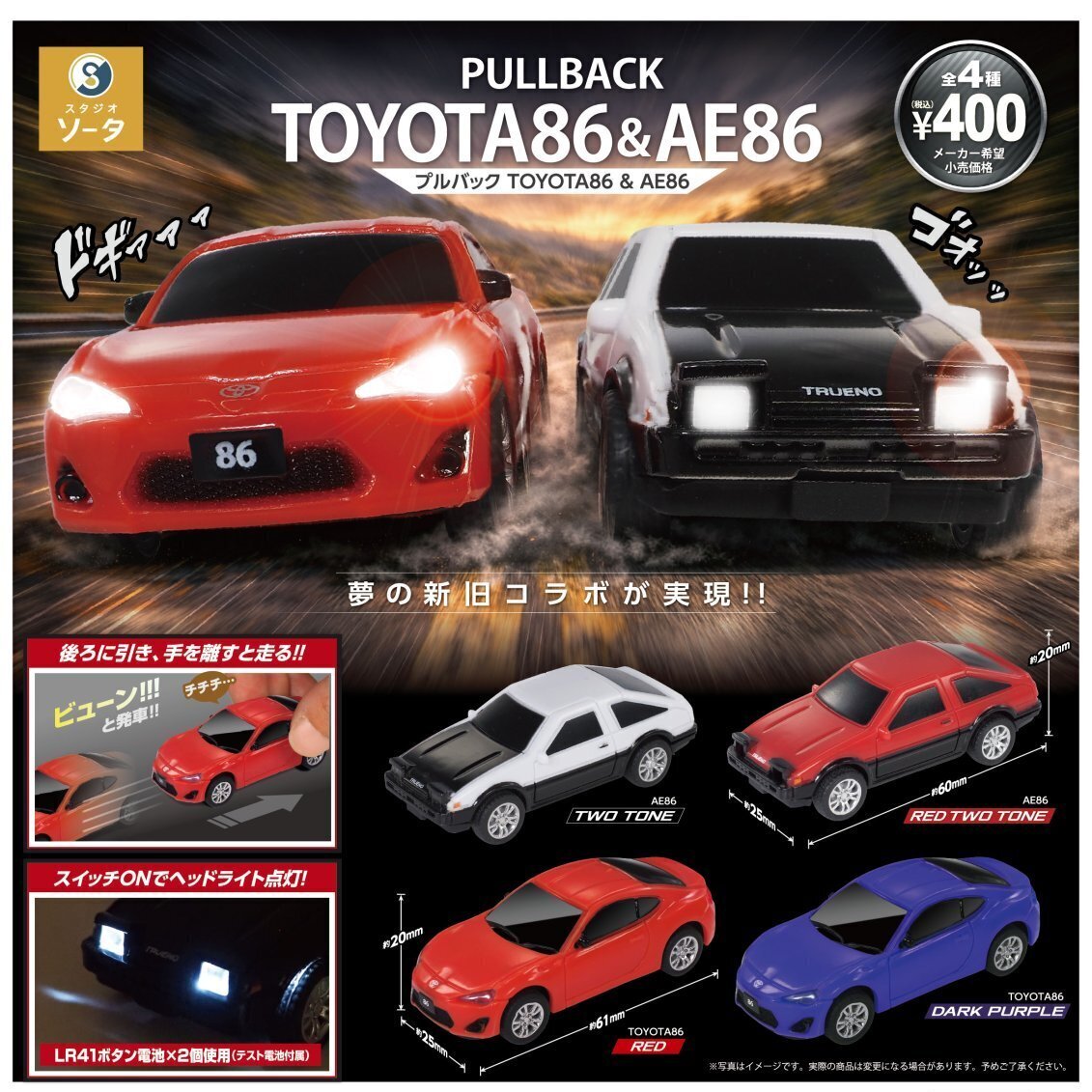 ホームスタジオソータ(SO-TA) 【カプセルトイ】正規ライセンスプルバック TOYOTA86&AE86(7月)【◆400円カプセル 30個入り SO-TA】+正規台紙